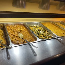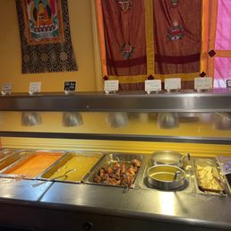 Went to the buffet lunch . So many great and delicious choices. Many vegetarian dishes. Soup, naan, delicious sauces (tamarind, yum). Service polite and speedy. Eat up until 2:30 weekdays and get to watch a Bollywood movie while you enjoy the food!!